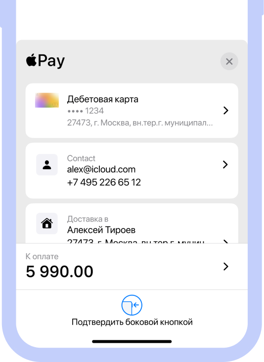 Использование платежных сервисов Apple Pay и Google Pay позволяет покупателям не вводить данные карт.